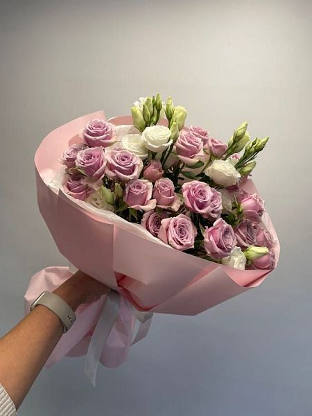Букет Соблазн изготовлен из стойкой альстромерия и удивительной розы сорта Мисс Пигги , которая поразит вас своим необычным раскрытием.